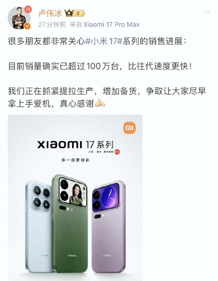 而小米近期软件更新频次明显提高,17系列上市首周销量超百万台,17ProMax定位于5999元价位范畴,市场反响非常的好。