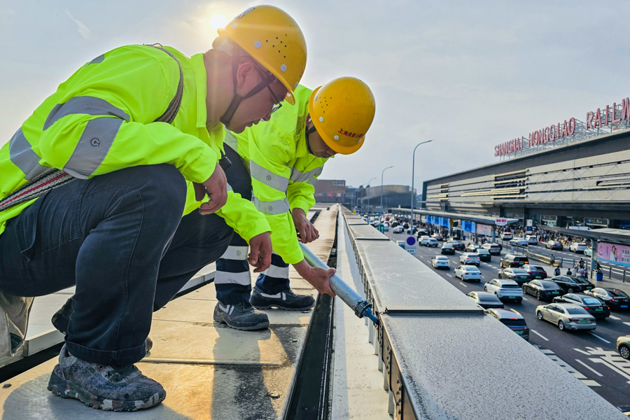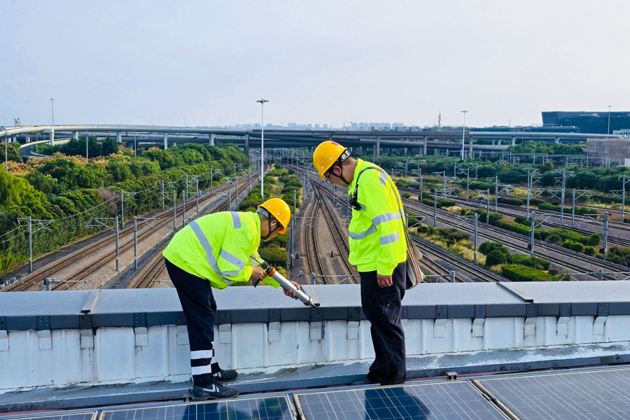 为应对国庆长假降雨可能引发的安全隐患,保障旅客进出站及候车安全,10月2日,中国铁路上海局集团有限公司上海房建公寓段组织房建巡检工对管内重点站区开展雨前巡检。